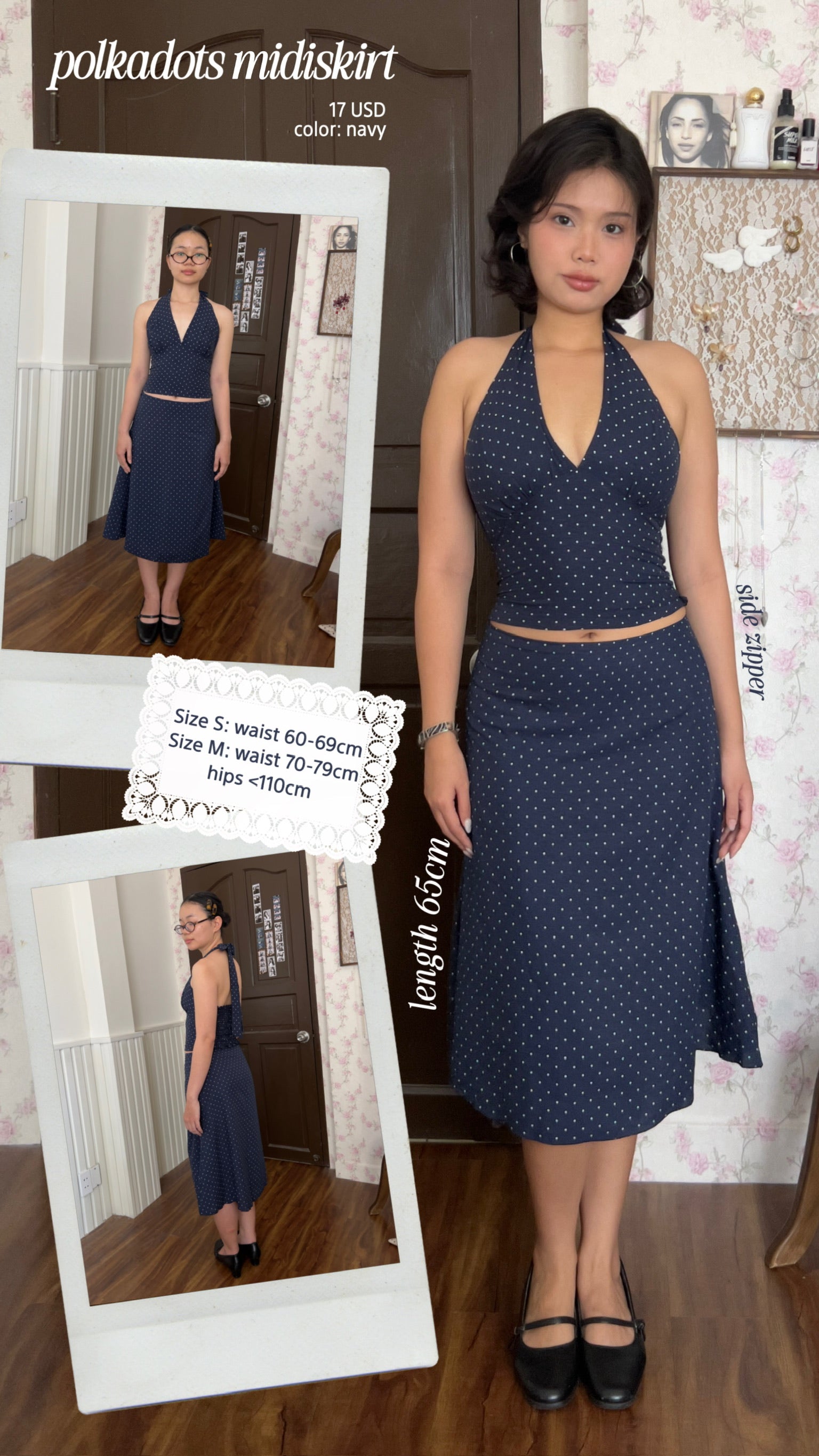 Polkadot halter top (navy)